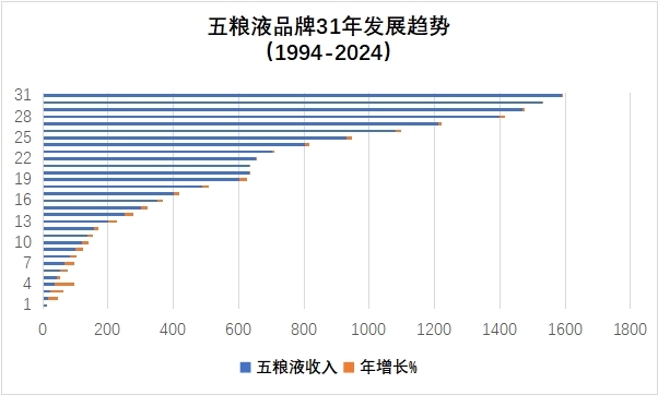五粮液从1994年到2024年,31年增长了203.8倍。见下图: